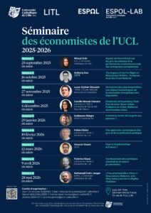 Nous sommes heureux de vous communiquer la programmation du Séminaire des économistes de l’Université Catholique de Lille pour l’année universitaire 2025-2026. Porté par une collaboration entre le laboratoire LITL et ESPOL-Lab, ce séminaire a pour objet de mobiliser les chercheurs autour de thématiques communes propres à l’analyse économique au sens large.